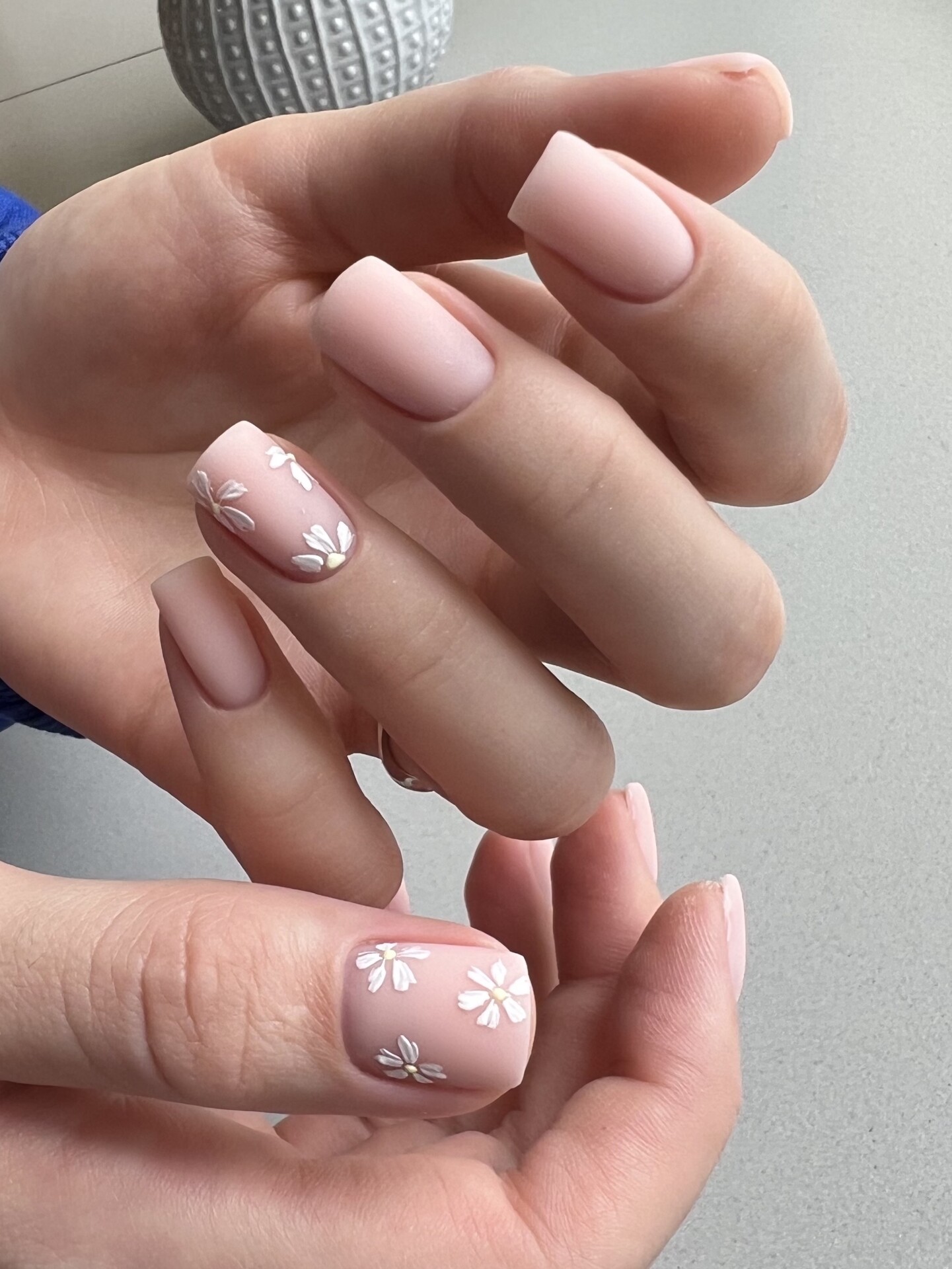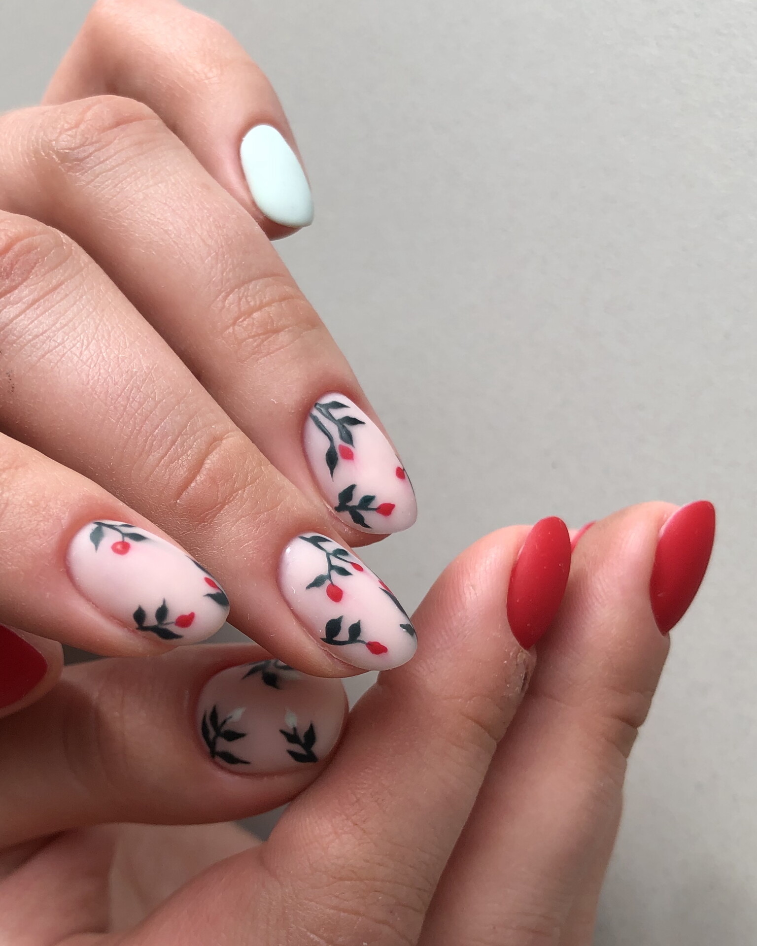 | Средней сложности Стемпинг, мрамор, битое стекло, ручная роспись, ветки, цветы | |